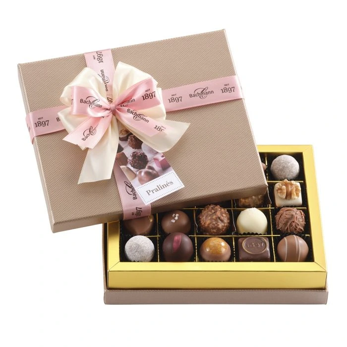 Mit edlen Zutaten wie Haselnüssen, Mandeln und Vanille entsteht ein harmonisches Zusammenspiel von Geschmack und Textur. Elegant verpackt und sorgfältig gefertigt – ein klassisches Geschenk aus der Confiserie Bachmann, das Genuss und Stil vereint..