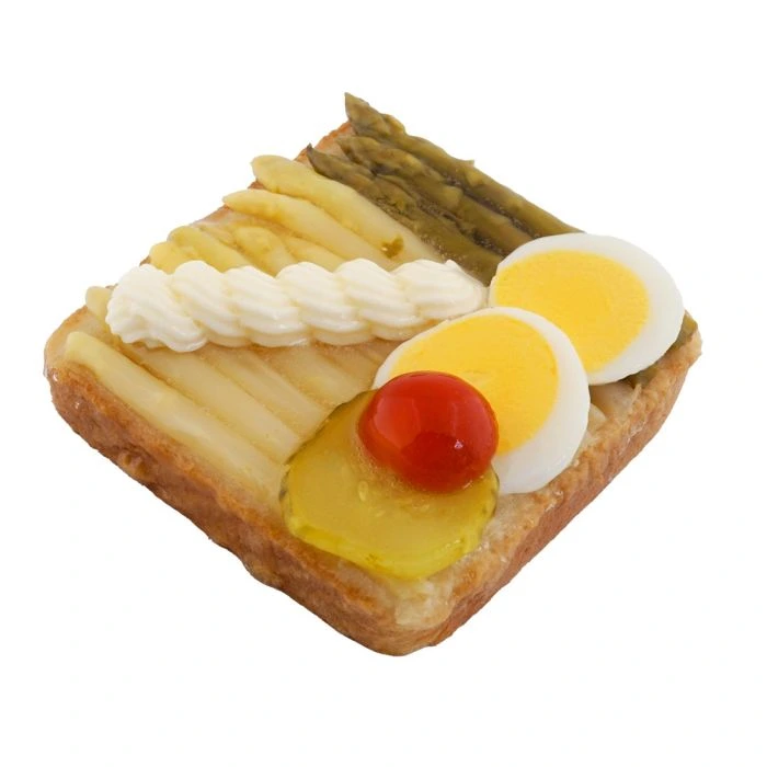 | Deklarierung | Zutaten: Spargelspitzen weiss 25% (Spargelspitzen, Wasser, Salz), Traiteurgelee pflanzlich (Wasser, Maltodextrin, Salz, Geliermittel (Carrageen, Johannisbortkernmehl, Xanthan), Aromen natürliche, Säureregulatoren: Kaliumchlorid, Kaliumcitrat, Konservierungsmittel: Kaliumsorbat, Zucker, Säuerungsmittel: Zitronensäure, Sonnenblumenöl), Weizenvorteig [Wasser, Weizenmehl], Spargelspitzen grün 9%, Cherrytomate, Wasser, Eier (Freiland), Mayonnaise (Sonnenblumenöl, Eigelb, Wasser, Weissweinessig, Speisesenf, Zucker, jodiertes Speisesalz, Zitronensaftkonzentrat, Verdickungsmittel: Guarkernmehl, natürliches Aroma), Butter, Rapsöl, Magermilchpulver, Invertzuckersirup, Hefe, Alpensalz, Backmittel, Gerstenmalzmehl |