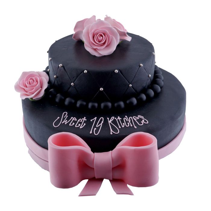 1. Stock (untere Torte): Für die untere Torte stehen Ihnen die Aromen von 5 bis 7 zur Verfügung. Die Rosen sind aus Zuckertragant hergestellt und sehr hart.