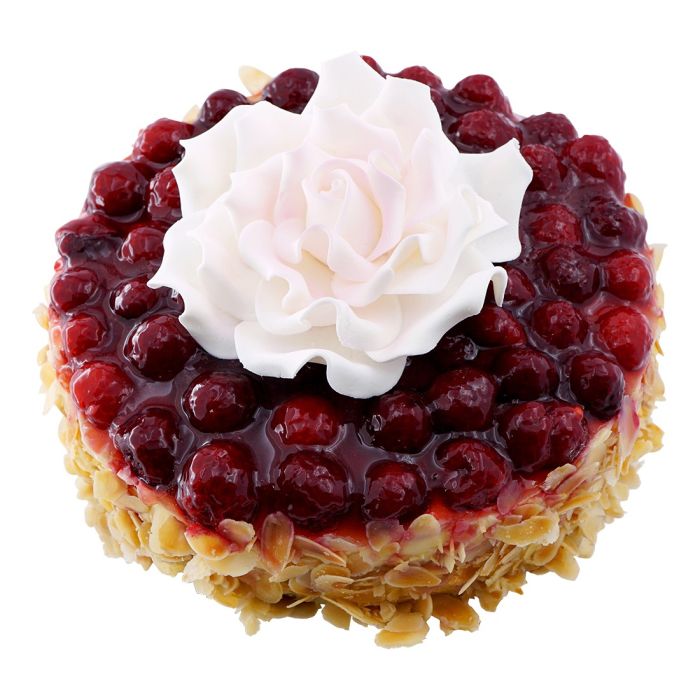 Himbeertorte Mamony - Der Winterrhit! Frische aromatische Himbeeren auf leichter Vanillecrème. Zartes Genoisebiscuit und Mandel-Decor.