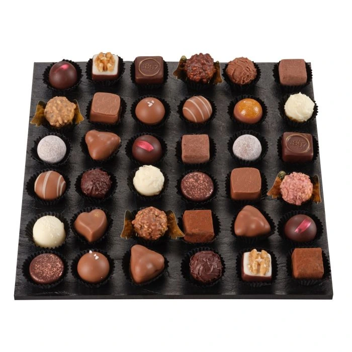 Schieferoptik Platte klein mit 36 Stück Pralinés.