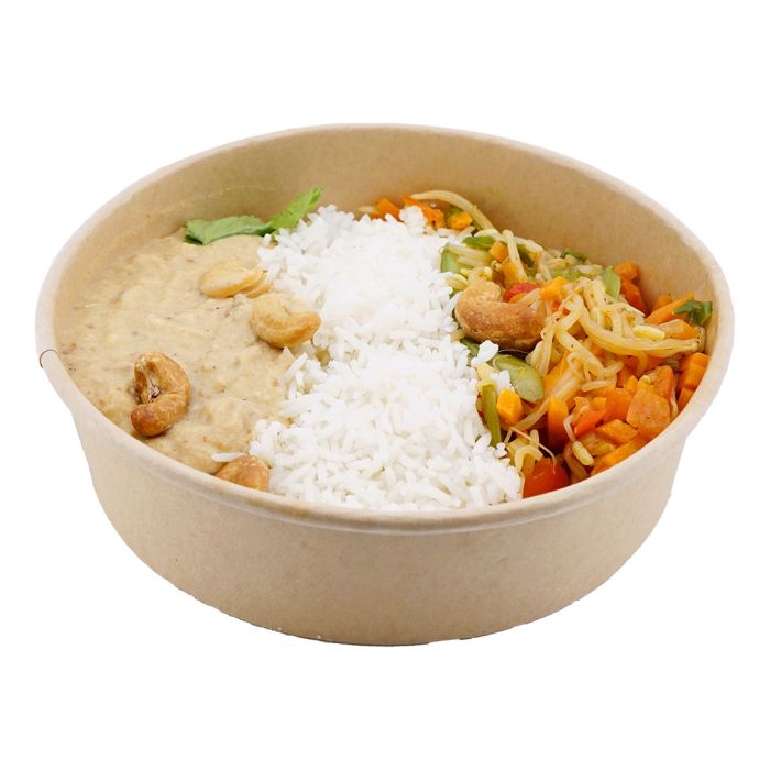 | Deklarierung | Zutaten: Basmatireis gekocht 37% (Wasser, Basmati Reis, Alpensalz), Kokosnussmilch 16% (Kokosnussextrakt, Wasser), Schweizer Pouletfleisch 8%, Satay Sauce 8% (Kokosnussmilch, Wasser, Zucker, Mungobohnen, Knoblauch, Erdnüsse, Tamarindensaft, Sojaöl, Cashewkerne, Sesam, Salz, Koriander, Chiliöl, Fischsauce (Sardellenextrakt), Garnelen, Gewürze, Zitronengras, Schalotten, Essig, Kaffernlimettenschale, Galgant), Wasser, Sojasprossen, Peperoni, Karotten, Kefen, Zwiebeln, Sweet Chilli Sauce, Frühlingszwiebeln, Saucenbinder (Weizen), Curry, Rapsöl, Sojasauce, Sesamöl |