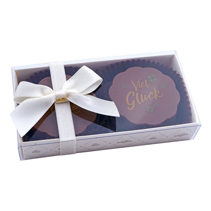 Glück ist das Einzige, das sich verdoppelt, wenn man es teilt. Die „glücklichen“-Grüessli sind die idealen Botschaften für unsere Liebsten, um zu zeigen, was wir Ihnen am meisten Wünschen. Umhüllt von der weltbesten Milchschokolade mit feiner Haselnuss-Pralinéfüllung und Nougatsplittern gefüllt.